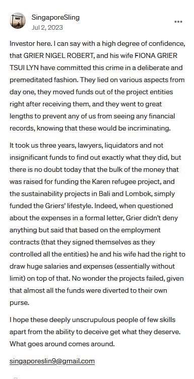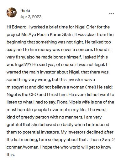Here are comments by some of victims, who total around 50, not including the thousands of Karen refugees the Griers saw fit to victimize: